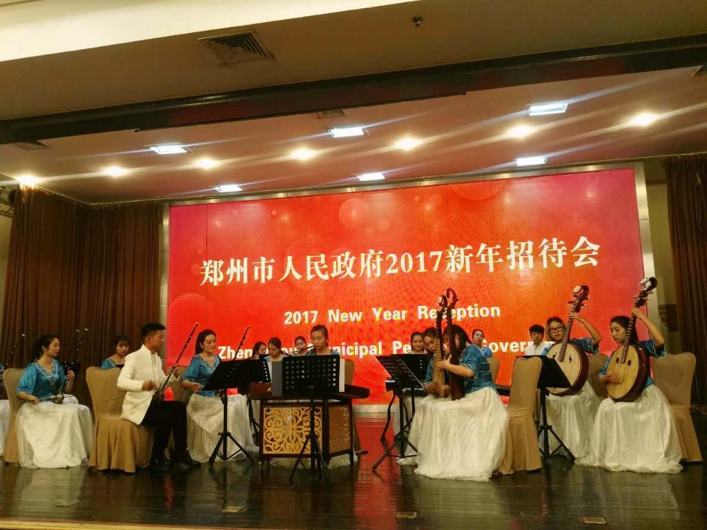 此次会上,我校音乐学院民族乐团为中外嘉宾奉献了一台精彩的具有中国风情的民乐演出,大家在一片祥和、欢悦的气氛中会聚一堂,共叙友情、共迎新年、共话发展。